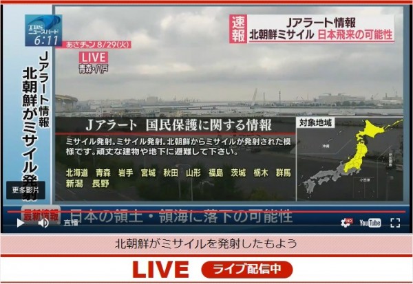 北韓導彈今晨飛越日本領空 日緊急通知民眾避難