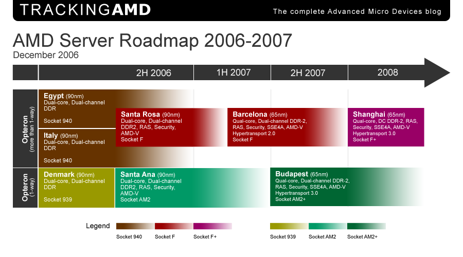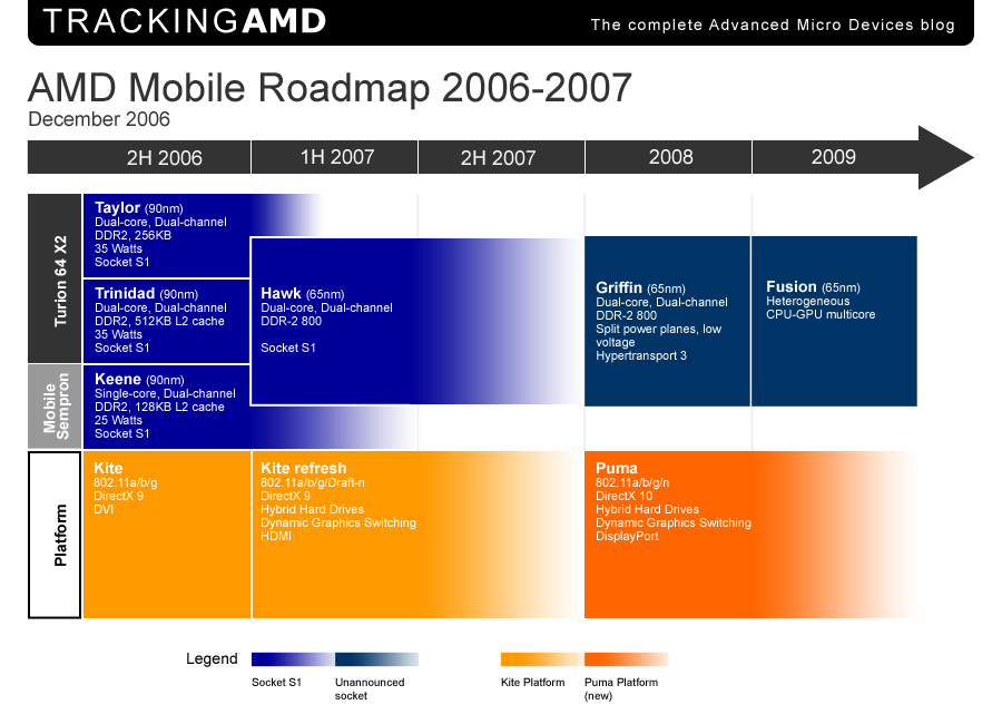 ATI晶片Roadmap 桌上型處理器 筆記型處理器 伺服器處理器 |