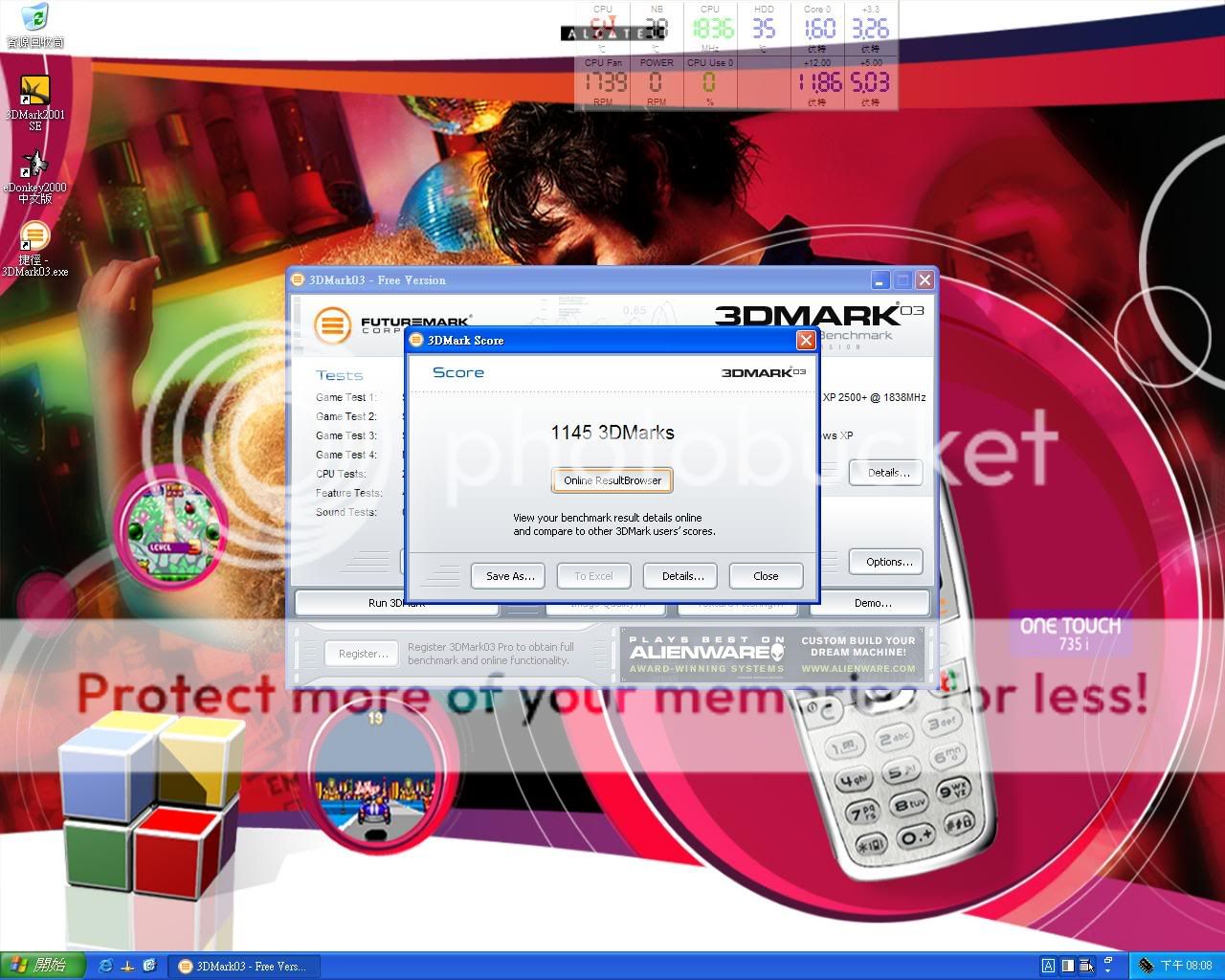 所以才換這張...[014] 64MB ...128bit 現代-4顆粒 平台:3DMark03-340.3DMark01SE barton 2500+,1.65V RAM:512MB DDR400 MB:MSI KT6D-LSR 接DVI...裸測 ![]() ![]() ![]() ![]() |