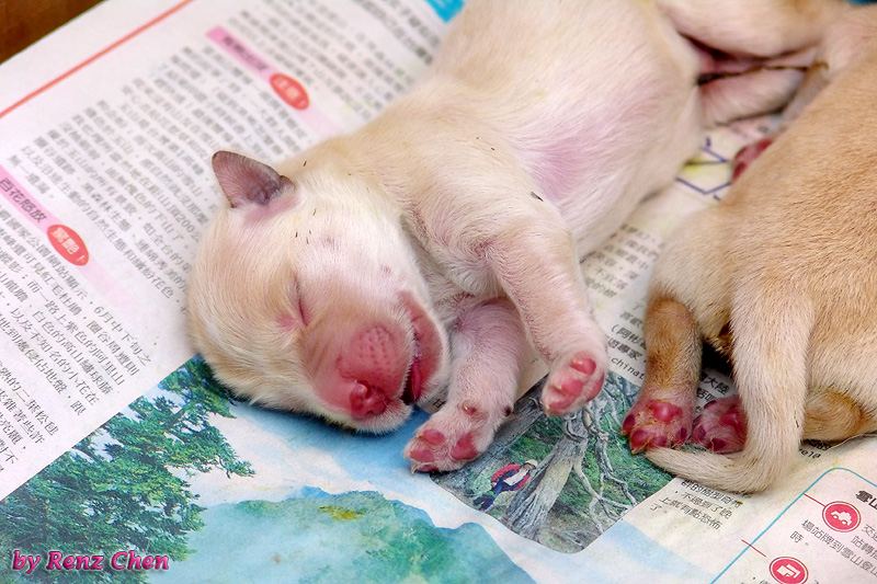 咦?怎麼有兩隻抱在一起了? 要多喝點,才會長的快。 有好幾隻很喜歡靠在媽媽的腳上睡覺。 從今天開始,波波即使已經餵完奶,還是不肯離開狗窩。 ![]()