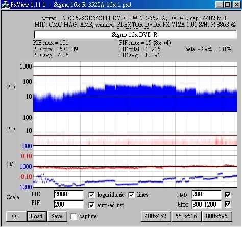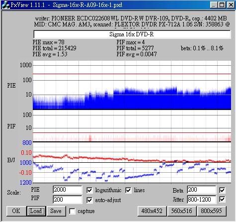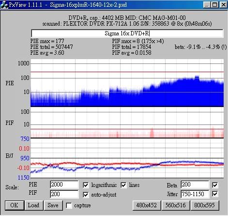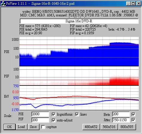 表示這種片子(Sigma 16x DVD+R)日後會讀取困難 ...(資料保存再現性弱)... 不過,還是感謝樓主抽空測試, 畢竟一張圖要跑B/J的話,就要快一小時說 ...純路過...