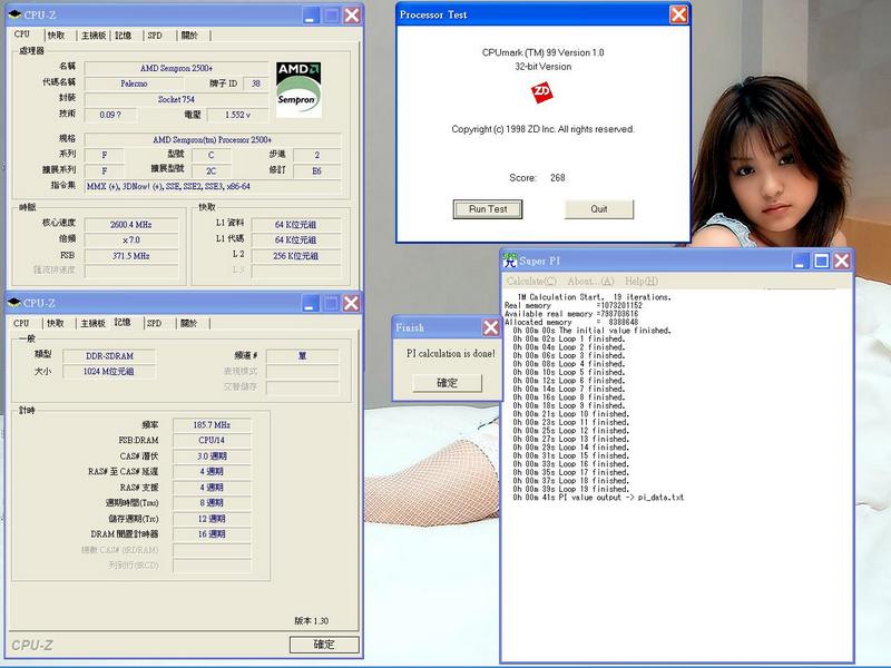 猜對了 因為只是要測U的極限罷了 記憶體除頻166不可能上這麼高 因為我用的ram很爛 ![]()
