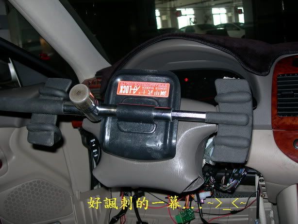 3.看到我有鎖方向盤鎖(8代剛甲武士 A-lock),用油壓剪將方向盤分屍 →