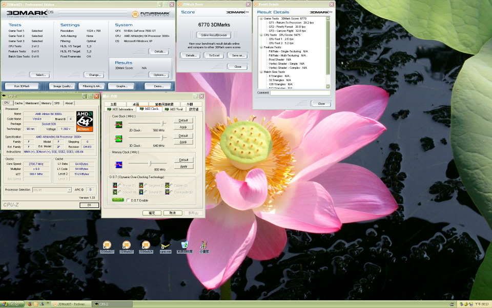 剛入手的7600GT,雖然有人測過了,自己來一篇,話不多說,請觀賞! MSI 7600GT外盒正面 ![]() 開盒後第一層 ![]() 第一層和第二層 ![]() 顯示卡正面 ![]() 顯示卡背面 ![]() 脫掉散熱器後正面 ![]() 看一下MSI的散熱器 ![]() GPU ![]() RAM samsung GC-14 ![]() 接下來看測試囉,測試諸元如下: CPU: AMD K8 3000+ MB: DFI Lanparty nforce4 Ultra-D UT RAM: Kingston DDR400 TCCC 512Mb*2 VGA: MSI 7600GT 256M HD: WD 120G 8M SATA*1 DVD-R: LITEON 16X DVD DVD-RW:Pioneer A08 CD+RW: LITEON 52x24x24 Mouse: Logitech MX500 Keyboard:Logitech 銀幻手 FAN: Thermalight XP90 + 9*9Fan CASE+POWER: 巴黎鐵塔+SeaSonic海韻 TORNADO 400W MONITER: DELL2405FPW DC: Minolta F300 預設時脈測試 Core:560MHz RAM:700MHz 3D Mark03 13088 ![]() 3D Mark05 5981 ![]() 3D Mark06 3057 ![]() 直接用MSI clock超頻測試 Core:640MHz RAM:800MHz 3D Mark03 14461 ![]() 3D Mark05 6770 ![]() 3D Mark05 3413 ![]() 測試完畢! 這個MSI 7600GT 靜音加強版比6800GS真的是靜音多了,聽某人測試過好像有四段變速,除了剛開機時全速運轉(第四段轉速)的聲音比較大聲之外,其他時候(一二段轉速)真的是滿安靜的,玩遊戲也算是靜音(第三段轉速)。 在剛買來的時候,才剛上機看了溫度嚇一跳,待機竟然顯示55度,室溫也才25度耶,跑了遊戲後是56度,真是奇怪,最後把散熱器拆下來,把Die上面硬硬的散膠刮掉,然後重新塗上散熱膏,室溫25度,待機顯示45度,遊戲後53度,看來原廠那個散熱膏真是差; 另外散熱器拆下然後在裝上的時候,發現鎖太緊PCB板會稍微彎曲變形,因為散熱器上面的導熱墊片太厚了,會導致散熱器鎖上去會傾斜,看來MSI的RD要檢討一下了,是不是該把導熱墊片從原本3mm換成2.5mm呢?只是個建議啦! 廢話不多說,以上就是我的測試,謝謝觀賞! |