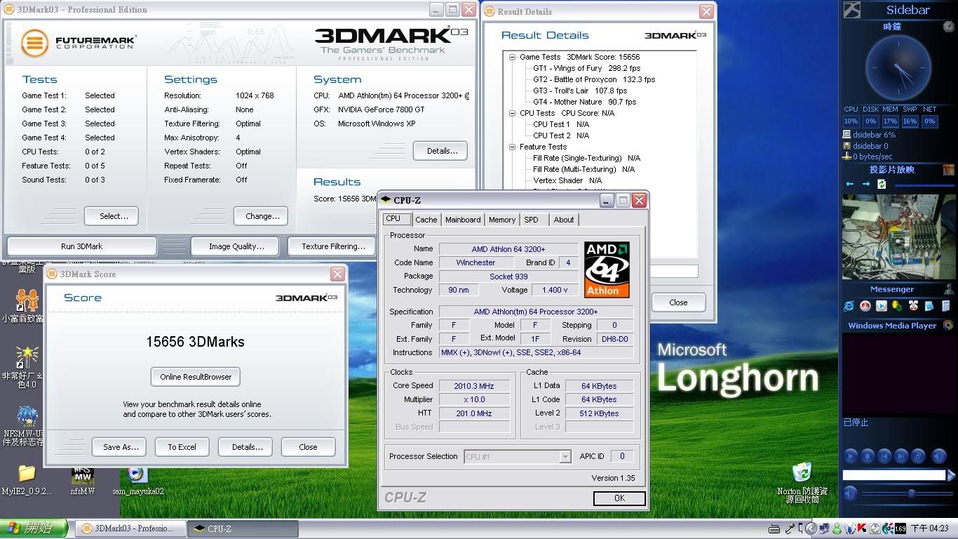 監天有空就PO一下心得當作常常在PCDVD看文的回饋 ----------------------------------------------------------------------- 話說AGP的末代神卡GF6800系列(7800GS這種來亂的不算) 死纏爛打在我nForce3 Ultra的版子上也好久了 因為這張GF6800NU是工程版 除了記憶體體質比較orz以外 他的核心可是一點都不馬虎的...隨隨便便都上450以上,但是記憶體很糟...應該說爛到不行XD 就是這玩意...已改AC NV5散熱器 ![]() 核心NV40 ![]() 開管還可以到400(其實可以到430.但是沒抓圖) ![]() 好!! 重點不是已經過氣的GF6800NU 昨天把我服役多年的nForce3 Ultra換成nForce4 Ultra 就是這張MSI K8N NEO4 Platinum V3.0(有夠爛的...超不上去) ![]() ![]() 明眼的人一看就知道是因為那該死的AGP... 這樣就一定有人會問啦...為什麼不換成AM2或是控肉? 原因是因為實在是太窮了...沒錢換DDR2 想說AMD K8-S939還可以稱一陣子吧? 了不起超頻"ㄍㄧㄣ"一下就過去 先換版子和VGA爽一下 ![]() 主卡 ![]() 附件 ![]() 雙DVI ![]() 公板設計,電容都一樣 ![]() ![]() 幾天前再網拍上相中了一張原廠保的GF7800GT,賣的頗便宜(7K) 趕緊把以前的資料拿出來翻一下,發現比GF7600GT(之前想要的)快了不少 雖然輸給GF7900GT,但在價格上卻少了2000~3000元左右 於是昨天就殺去面交 東西拿到是全新的,連配件都一樣不少,裡面還附贈一張醜醜的大海報...orz GF6800NU v.s GF7800GT ![]() ●先了解GF7800GT和GF6800NU的差異: GF7800GT GF6800NU ------------------------------------------------------ 介面(廢話...) PCI-E 16X AGP8X/4X 核心 G70 NV40 核心時脈 400MHz 325MHz 記憶體 500MHz 350MHz 256bit 256bit GDDR3 GDDR1 256MB 128MB 記憶體頻寬 32.0GB/s 22.4GB/s Pixel(不會翻譯) 20管(*註一) 12管(*註二) Vertex 8 6 ------------------------------------------------------ *註一:GF7800GTX和GF7800GT是同一個核心,更高階的GF7800GTX是24管線,但至今仍無法透過軟體改出屏蔽的4管 *註二:GF6800NU和GF6800GT和GF6800Ultra是屬同一核心,但GF6800Ultra和GF6800GT是16管線,故有人透過RivaTuner軟改出屏蔽的4管 一拿到就殺回家把它換上去 (換版子就跟換新一樣麻煩...不!應該說更麻煩...因為還要拆掉擦乾淨...) 上機照 ![]() 經過一個晚上的折磨(重灌~)之後 (PS:其實nForce3 Ultra換到nForce4 Ultra不必 但是心裡面毛毛的說...) 終於今天抽空測試一下 順便玩點Game (這才是重點.山豬馬克有啥好玩? 還分版本...ㄘㄟˊ...) 先玩我最愛的全民公敵和戰地風雲2-中美大戰 不囉唆...特效全給他催下去吧!! 疑? 不會吧? 不是說GF7800GT只贏GF6800NU 20%嗎? (我測分數的結果) 怎麼...差...這麼.....多...........!? FPS根本幾乎都鎖死在60...一點頓的感覺都沒有.... 之前用GF6800NU特效都只能開一半,而且還會有鈍鈍的感覺(大家都有經驗吧?) 經過我狂玩好幾小時後(好爽~~) 終於決定測測分數了 首先去抓覺得最沒用的山豬馬克03和05 (06聽說看了傷身...所以就算了) ![]() ●成績如下: 山豬馬克03 山豬馬克05 ----------------------------------------------------------- GF6800NU(325/700 12管) 9345 3578 GF6800NU(400/705 16管) 11329 4481 GF7800GT(400/1000) 13987 6821 GF7800GT(430/1180) 15656 7746 ----------------------------------------------------------- *以上皆非極限...只是懶的試了...遊戲順才是王道... ●溫度(全速以全民公敵做試驗): 測試環境:關機殼 12cm*2 8cm*4 CPU風扇9cm*1 顯示卡皆不超頻 室溫32度C (不開冷氣省電) GF7800GT GF6800NU ------------------------------------ 待機 51度C 46度C 全速 72度C 65度C ------------------------------------ *GF7800GT用公板風扇,GF6800NU用AC NV5風扇(原來的不見了...orz) ●結論: 整體效能GF7800GT可以說是全面性獲勝(廢話...)但是除了在分數上的增加之外,在遊戲上有著更顯著的成長,溫度比GF6800NU略高,但是上在可接受值範圍內,在這麼AGP即將沒落的今天,換個介面(PCI-E 16X)是好的選擇... 因為在相同的價格之下,PCI-E所可以買到的絕對都比AGP介面快上10%左右,當然若你沒有對遊戲這麼執著,GF6600(AGP 8X)以上的使用者還可以再觀望一陣子等更高階或C/P質更佳的卡... 我還是喜歡我的X-FI...比較漂亮XD ![]() ![]() ![]()