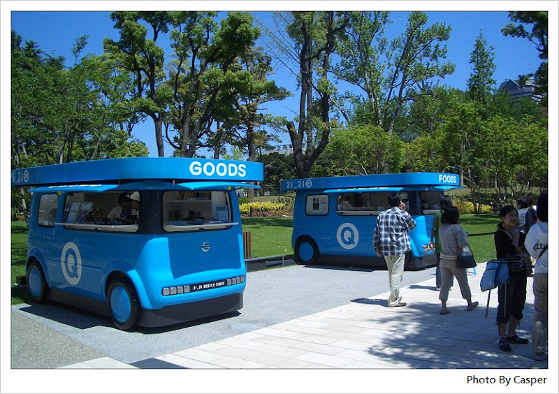 車子是NISSAN CUBE改裝的,台灣沒有引進。 一台是賣一些小紀念品,一台是賣吃的! |