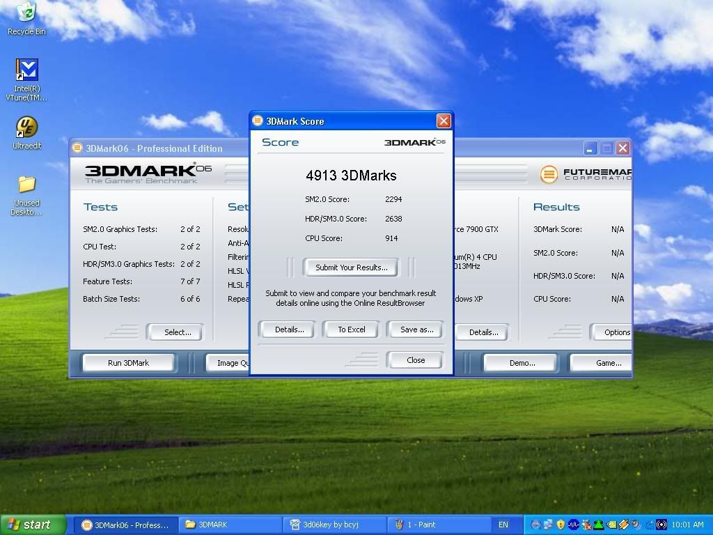 難得找到一個硬體跟我幾乎一模一樣的耶 只不過我的 ram 有 2g, 而且 OS 是 Win2K 等 7900 入手了再來測看看 另外我看您右下角同時在 run 一堆程式......拿掉的話分數不知道會不會好看些 ![]() |