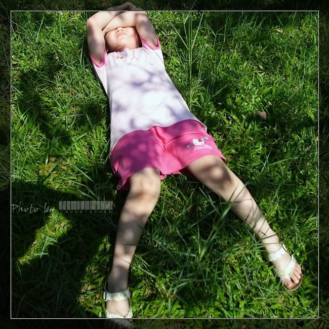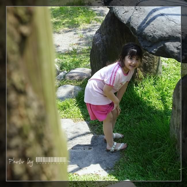 週六帶安安回去探視爺爺,午飯後安安想去公園看"她的小木屋". 所以就頂著大太陽去那走走!