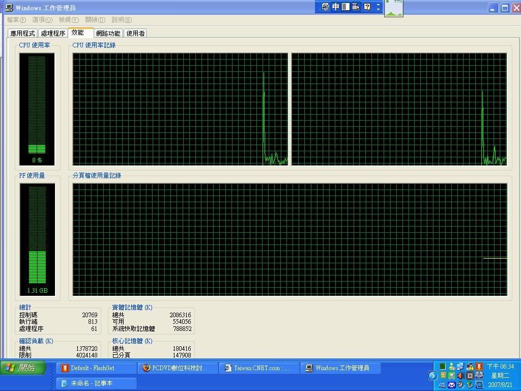 像我才開了幾個視窗 2G就已經快不夠了.. 如果再多開幾個IE 畫面就開始變型..... 目前打算賣掉舊的兩條1G換成兩條2G的 ![]()