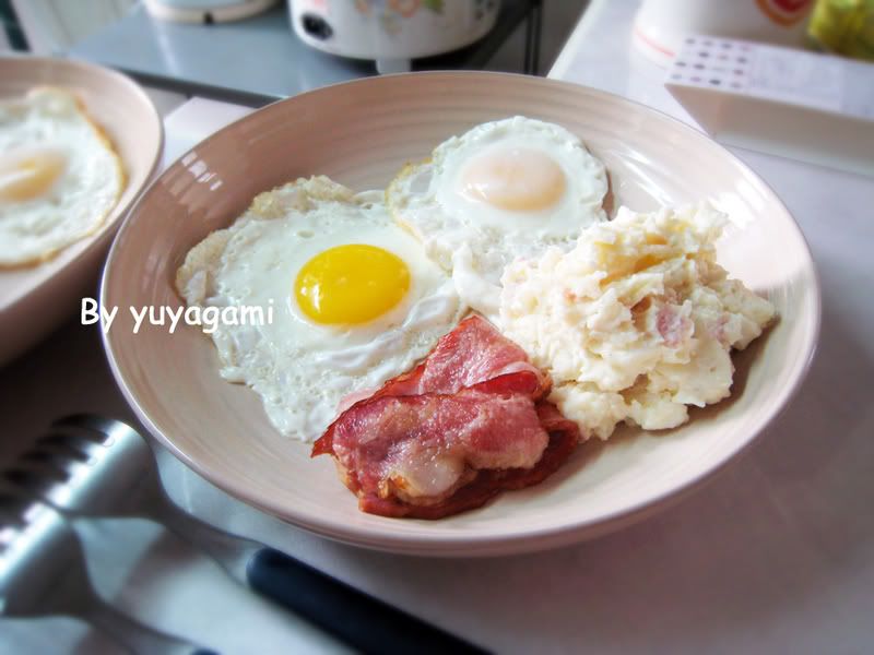 yuyagami 煎蛋很漂亮,不過我比較不習慣吃蛋黃不熟,黏黏稠稠的樣子吃了會怕,所以都是弄到熟為止