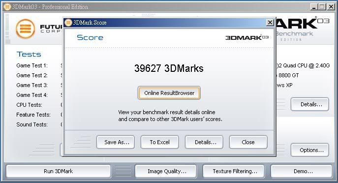 也感謝這2年來陪伴我度過許多歡樂時光的7800GTX(賣力幫我放片片) 現在賦予7800GTX最終任務就是 PK 8800GT~ 顯卡就不拍照了,可參考官網圖片. http://taiwan.msi.com.tw/index.php?...130&cat2_no=136 測試平台: XP SP2 Intel Q6600@3G ASUS P5K-E 2G RAM(DDR2-800) 7800GTX 256MB 預設(430/1200) NV驅動94.24 WHQL 8800GT 512MB 預設(660/1900) NV驅動169.02 WHQL 3DMark03 7800GTX ![]() 8800GT ![]() 3DMark05 7800GTX ![]() 8800GT ![]() 3DMark06 7800GTX ![]() 8800GT ![]() ===================我是分格線==================== CS:Source 1680x1050 4xAA/8xAF 7800GTX ![]() 8800GT ![]() 美少女BenchMark測試 1280x960 4xAA 7800GTX ![]() 8800GT ![]() 部分人認為8800GT原廠散熱能力很差,預設Smart Fan轉速的情況下散熱確實差強人意 但手動提高轉速50%後,以時脈660/1900跑3Dmark最高溫度72度/待機54度 (室溫27.5度) 單槽散熱而言還不錯,並沒傳言那麼不堪. (50%轉速噪音都在個人接受範圍內) 淚光閃閃7800GTX,終於可以好好休息了~ 讓小老弟8800GT來接替新戰場~ |