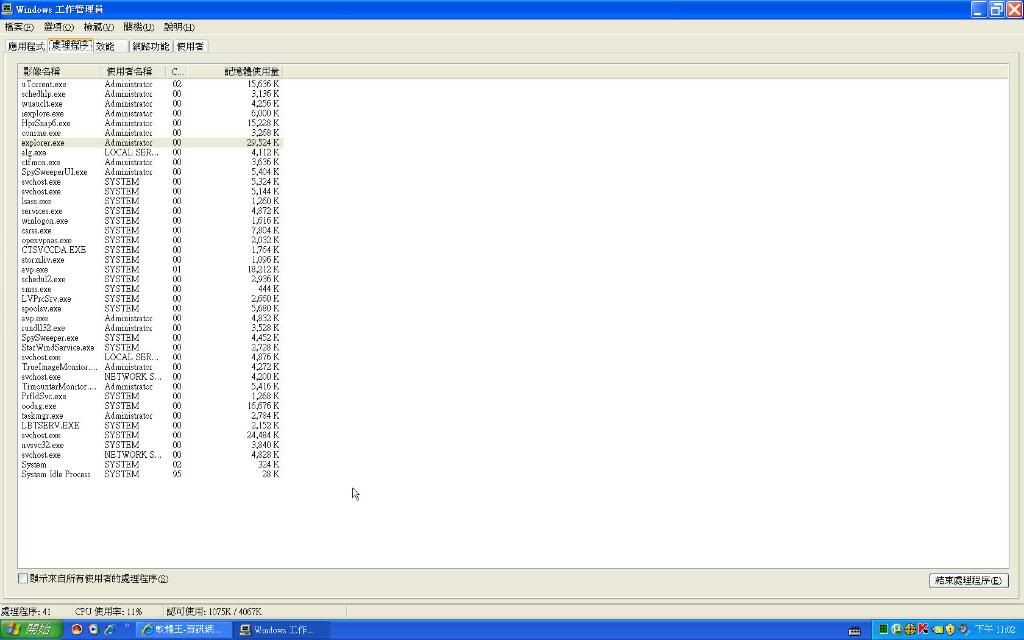 系統會變的非常的慢.切換視窗可能要一分鐘.字也都會不見 我已經更新病毒碼掃毒及掃木馬了.並沒有發現異狀 請問這是什麼原因阿..最近兩天才開始這樣的 我附上兩張圖麻煩大家幫我看看有沒有問題.謝謝 ![]() |