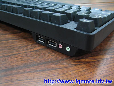 在鍵盤的左上方背後有兩埠usb hub與音源的輸出與輸入端子