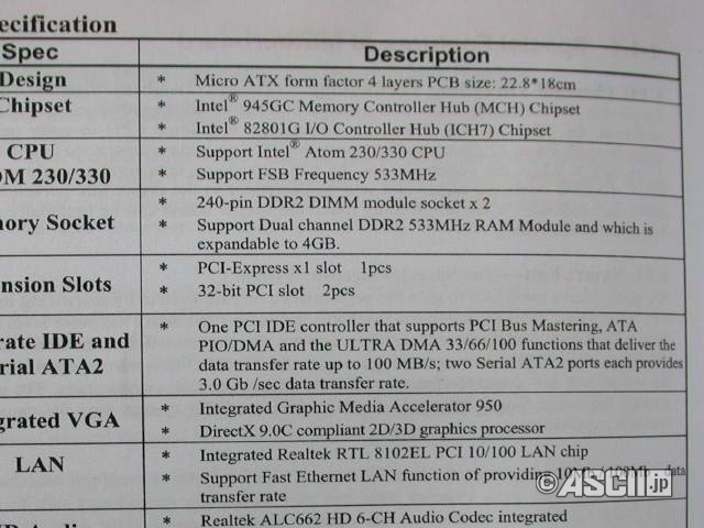 Jetway 製 Atom 330 採用 with 雙通道 MicroATX 主機板 捷波 Jetway 發售了一款代號「ATOM-GM1-330」 型號︰ATOM-GM1-330 晶片︰ I945GC + ICH7 輸出︰ VGA 尺寸︰ MicroATX 售價︰日本零售市場為 9,500 日幣 預覽︰ ![]() ![]() ![]() ![]() ![]() ![]()