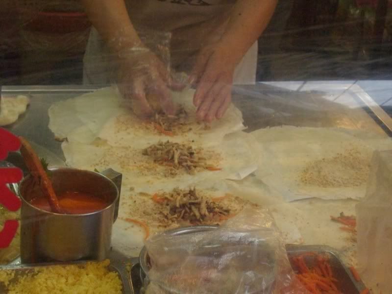 ![]() 基隆廟口老攤之一的什錦春捲 配料有菜圃、香菜、肉絲跟紅燒肉 ![]() 還有碎蛋跟紅蘿蔔絲 ![]() 還會再加高麗菜、豆芽菜、花生粉跟甜辣醬 ![]() 買一個回家吃 ![]() 一口咬下盡是滿滿的餡料 ![]() 本來是想買新樂戲院對面的滷味回家吃的 但沒開只好再走回來買潤餅 還配一杯清心福全的烏龍綠喝 潤餅捲說多好吃也還好 ![]() 其實也沒有多餓只是想吃 2009.06.14_基隆廟口~什錦春捲(潤餅捲)~攤位實景高畫質影片 2009.06.14_基隆廟口~什錦春捲(潤餅捲)~潤餅近拍高畫質影片 ![]()