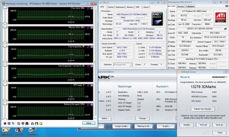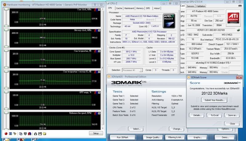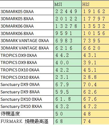 在效能表現上可以看出來,MSI最後還是敗給了HIS,其實並不非常的意外,因為HIS的冰酷版,在預設的時脈上就比較高一些,所以成績高些是非常正常的,但是從價位的考量上,MSI本身價位較低或許還是可以吸引到一些買氣,而且還是有些方法可以提升這張卡的效能,因為本身的4+1相供電有助於超頻的表現,個人測試在風扇轉速100%的時候,可以將時脈OC到900/1150還是可以穩定工作,這樣相比之下似乎就可以超越過HIS的冰酷版表現,總體來說這張卡算是比較適合給預算有限但還是想享受效能的朋友,但如果預算有些充裕,也不太想冒險超頻的話還是可以選擇出廠效能就較佳的HIS 冰酷版4850。
