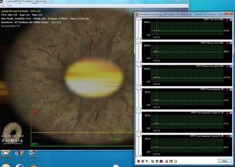 至於這張卡的溫度表現,前面待機溫度已經提過約在50度之間,3DMARK運行的溫度最高溫約在72度左右,接下來用FURMARK用1024*768不開反鋸齒運行約20分鐘。