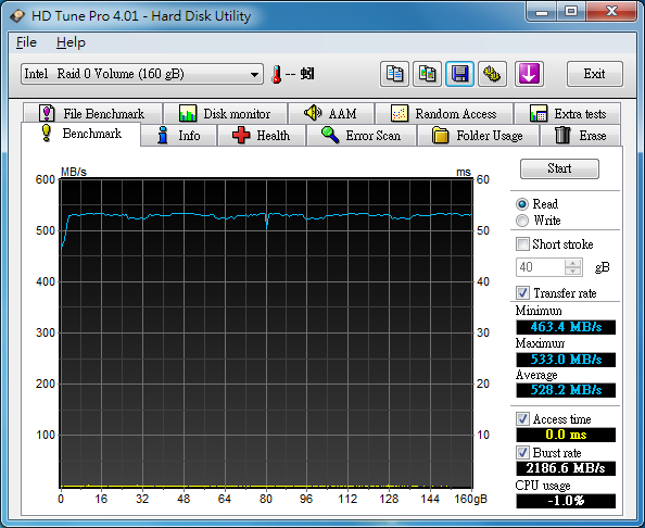 硬體版上爬文便知,有許多 X-25M G2 * 2 的 RAID0 測試, 不甘寂寞下,敝人也野人獻曝丟出幾個簡單的測試數據: ![]() ![]() ![]() ![]() ![]() ![]() [心得] 1、外接盒外觀質感不錯,組合時也容易。 2、但實際用,扣鎖的壓扣設計不太好,不小心就容易壓不緊。 3、省去一條電源線,反而成了敝人認為的賣相。 4、含直接接主機板的效能幾乎一模一樣,這個轉接盒訊號傳輸上幾乎無明顯損耗。 5、價格不符合預期,如果售價低於 800 元才稱得上合理。 以上。