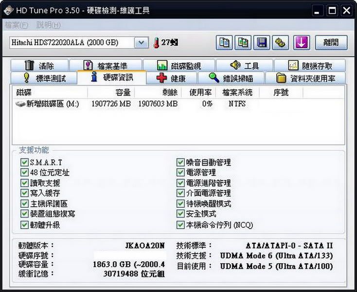 [T7K2000 ] HITACHI 2TB 硬碟 小測試