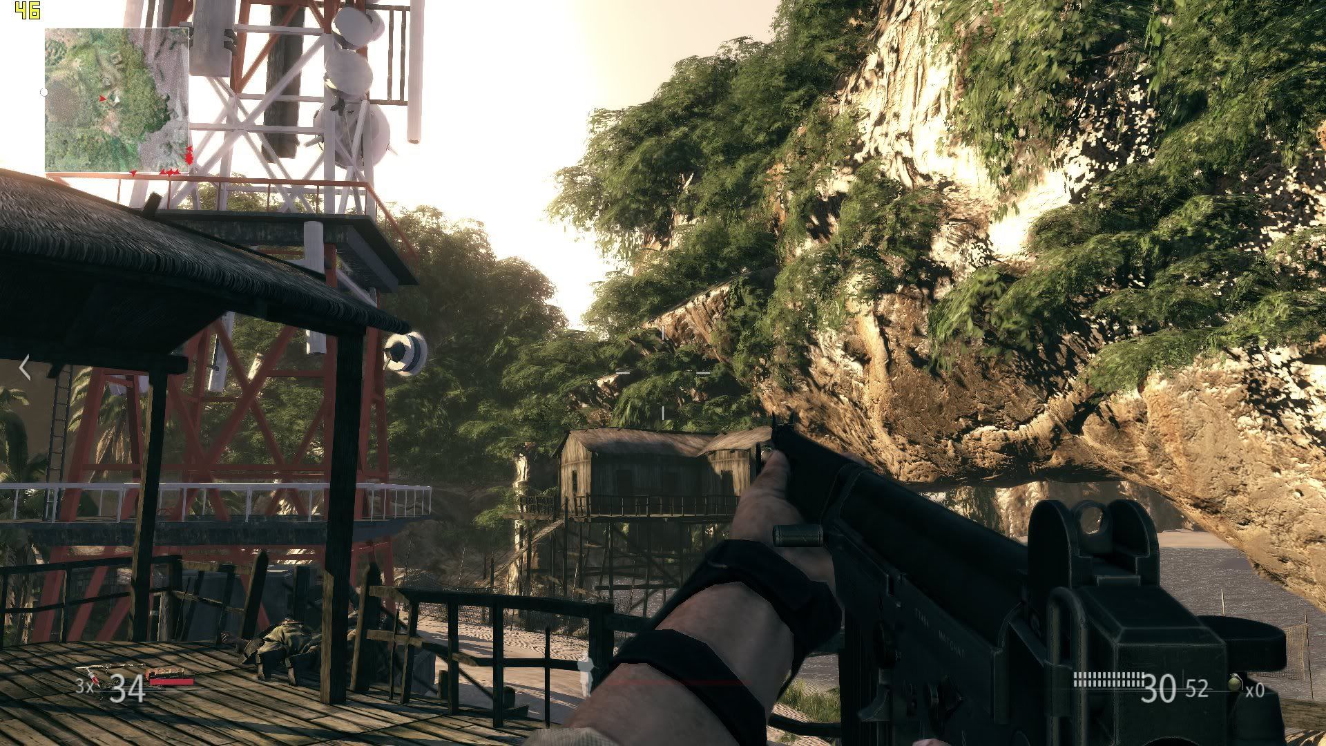 然後主角又被背叛Orz, 最近不管是COD還是其他FPS都喜歡搞 背叛的梗...能不能換一下啊? 基本上畫面和氣氛營造的不錯,只是遊戲沒什麼自由度只能順著 劇情一直殺下去,而且只要主角被發現一次後面接近敵人不管多 遠都會自動開火狂打你,比千里眼和熱掃描還厲害...也許是在下 玩HARD故意刁難玩家吧! Orz