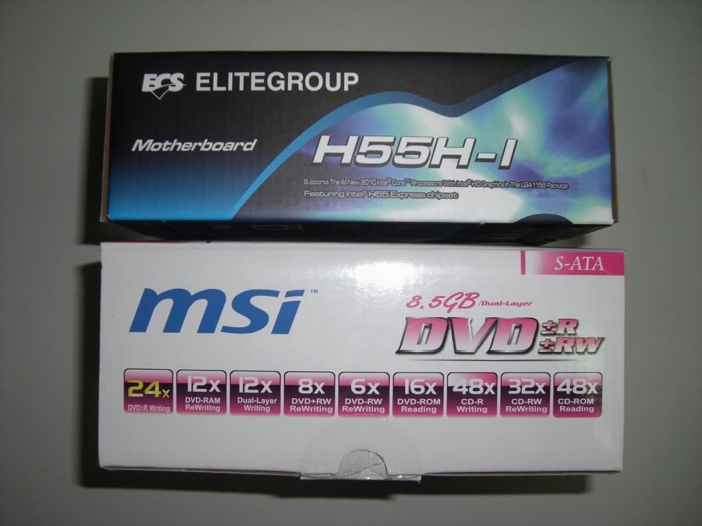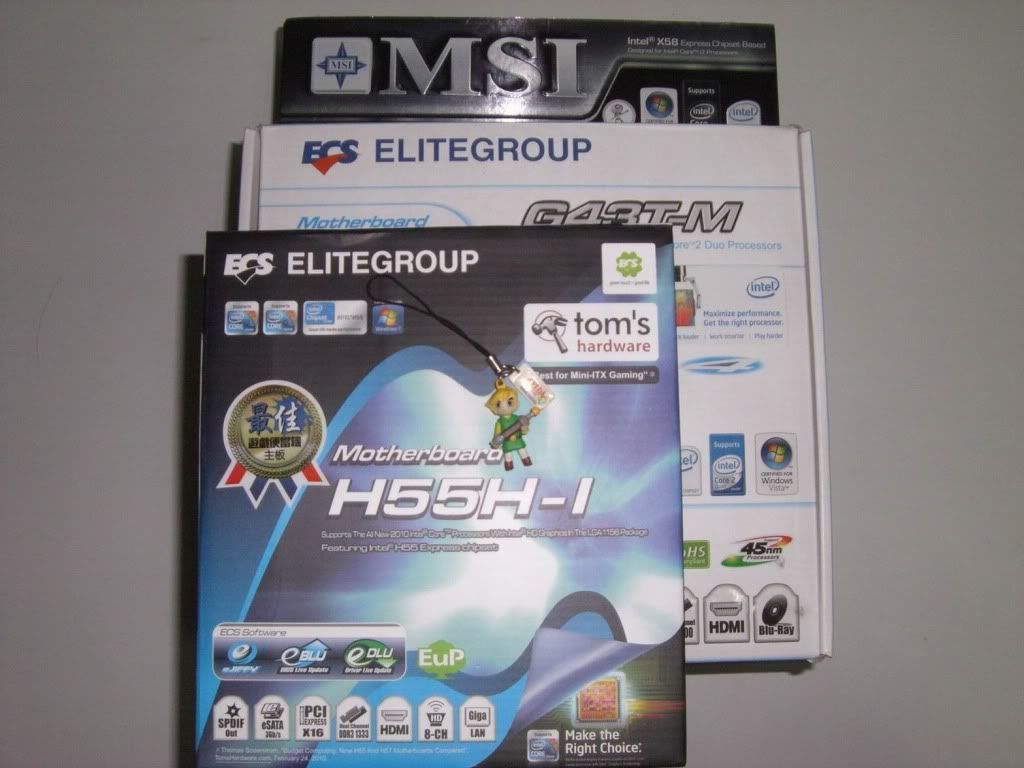近期"精英ECS"發表了一張ITX-H55晶片的主機板~! 又小又強~又有PCI-E顯卡的插槽~可裝上一張使用者理想的顯卡~ 最讓小弟來開箱這一張超級可愛的小主機板~ECS H55H-I Mini-ITX~! 給大家看看吧~! 精英寄過來時的包裝~!小小的一袋~! ![]() 拆開外袋~H55H-I Mini-ITX可愛的外盒~! ![]() 和ATX&M-ATX的兩種主機板外盒比一比~! ![]() 有多小~拿光碟機的外盒來比一比就知道~! ![]() ![]() 放進去光碟機外盒~還真是剛剛好~! ![]() 外盒上的小標籤~最佳遊戲便當機的主機板~! ![]() 盒裝內的配件~! ![]() 超可愛的小板子~! ![]() 1156的CPU背板 ![]() 和ATX及M-ATX主機板做比較~! ![]() 1156的CPU座~! ![]() 4個SATA及2組前置面板USB座~! ![]() 後端的I/O~HDMI~DVI~D-SUB~4組USB及一個E-SATA ![]() 兩組風扇的電源座~! ![]() 這一次開箱~小弟搭配I3-510ES及威剛DDR3-1600X2 ![]() ![]() 超迷你的主機板~裝上了5750後,感覺更小了~! ![]() 先用裸測來做測試~方便更換顯卡測試~! ![]() 主機板上還有兩顆小小的LED燈~一顆紅色~一顆綠色~! ![]()