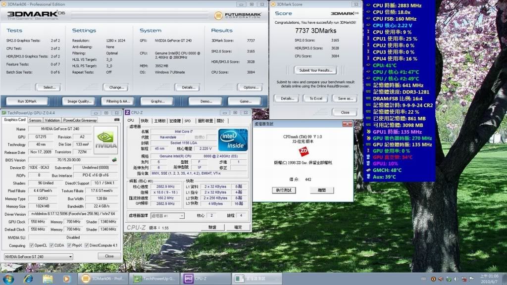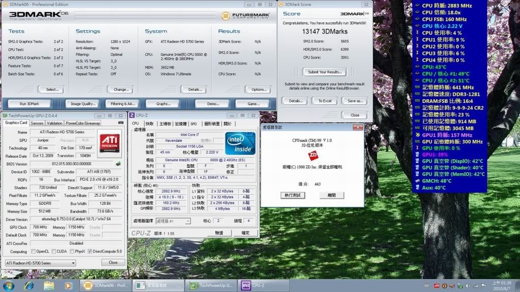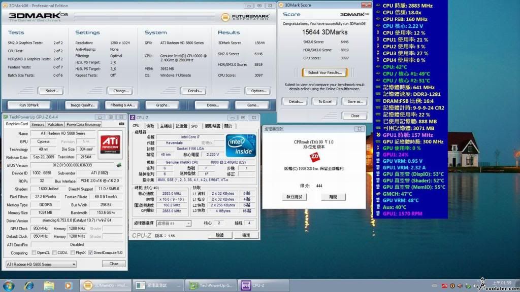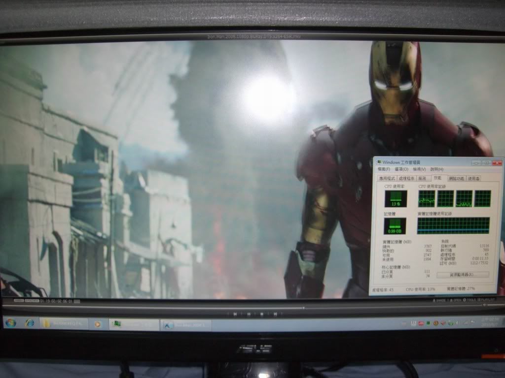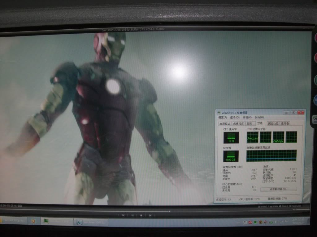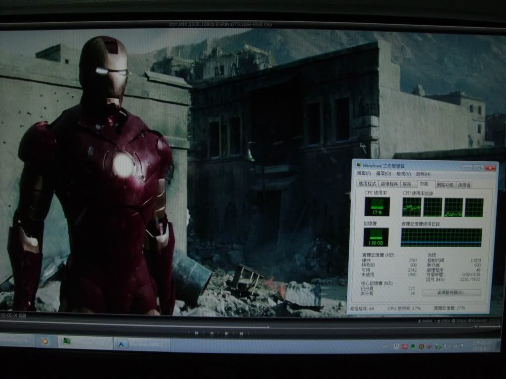 CPU超上2.8G-上5750待機-功耗78W ![]() CPU超上2.8G-上5750跑3D06-功耗145W ![]() CPU超上2.8G-5750跑3D06分數~13147 ![]() ---------------------------------------------------------------------------------- CPU超上2.8G-上5870待機-功耗79W ![]() CPU超上2.8G-上5870跑3D06-功耗204W ![]() CPU超上2.8G-5870跑3D06分數~15644 ![]() ---------------------------------------------------------------------------------- 測一下各項軟体~! ![]() 小測一下1080P影片~CPU使用率並不會很高~! ![]() ![]() ![]()
