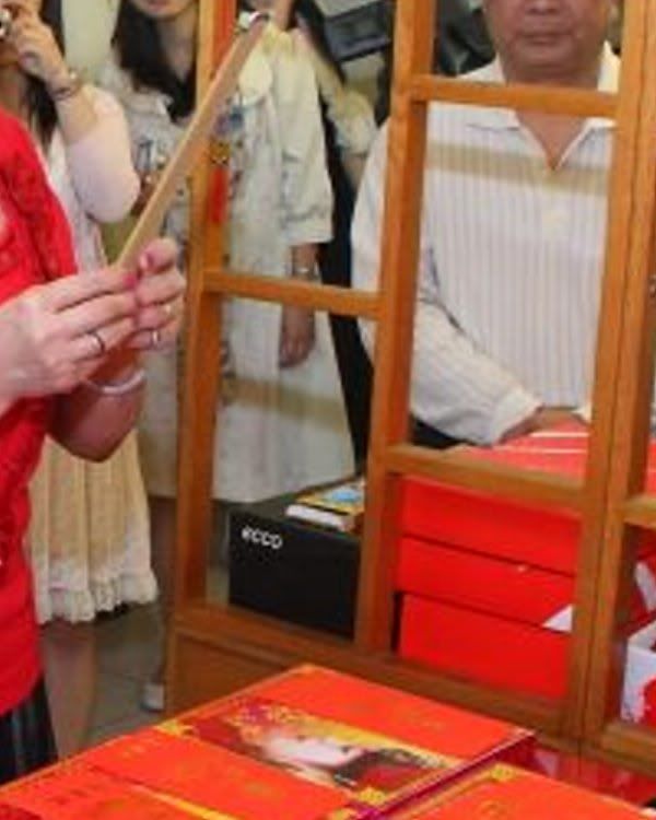 8月7日,上午9點,備好聘金、金飾,男方親友多人,開著6部車,浩浩蕩蕩往女方家去,為兒子訂婚。