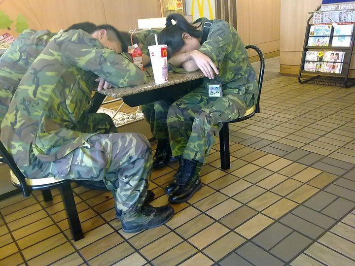 ![]() "昨天去M當勞 吃飯的時候到的這情況..... 為什麼 在M當勞睡覺呢 ? ! 而且還穿著軍服 ? !" 這是原PO照片的人的評論, 大家的看法是如何呢? ![]() |
