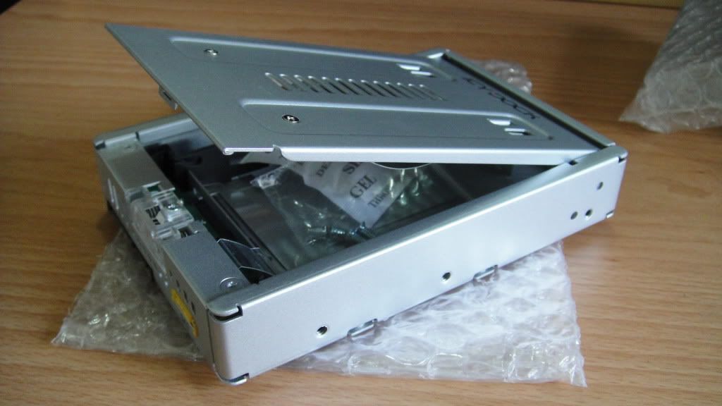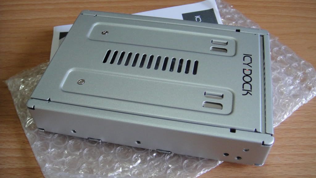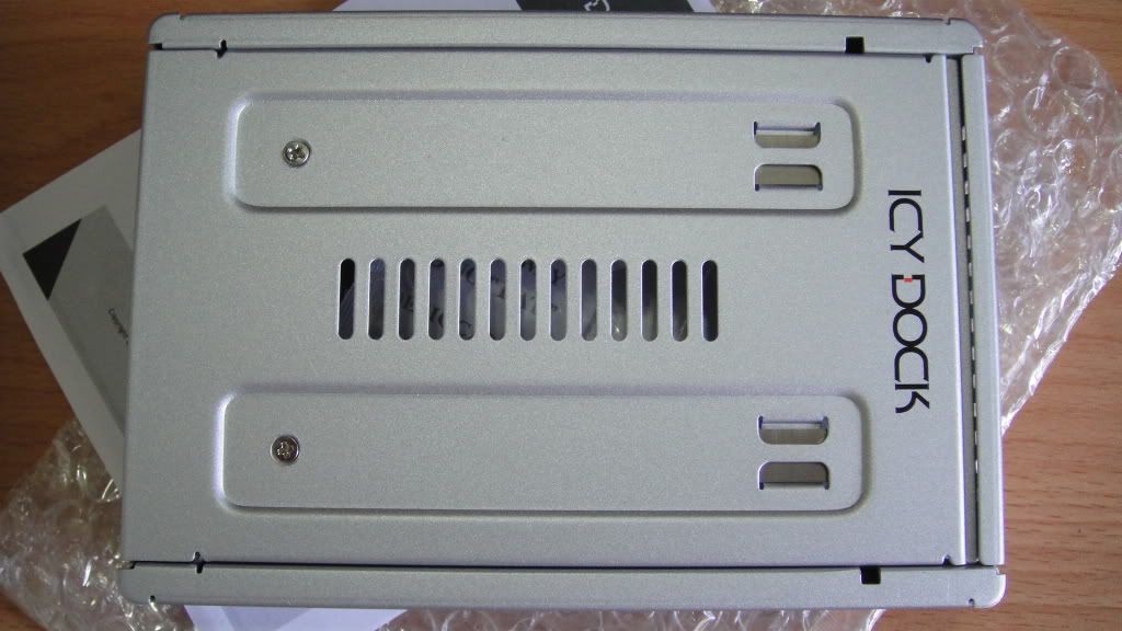 ICY DOCK的最新產品.... 比起之前的MB882系列... 品質更好了... 來看看之前的MB882系列... ![]() MB882系列的材質外殼是使用塑料的... 這次MB982採用鋼板材質除了質感以外.. 穩固定也提高了... 並且提供SAS介面.. 不過SAS部分不適用抽取模組.. 從MB882系列開始, 都有一個特性... 可以適用絕大部分的抽取模組.... 在所有轉接產品中... 目前市面上販售的似乎也只有這家公司有做這類產品... 廢話不多說, 我們來看看.... --------------------------------------------------------------------------------------------------------------- 收到某物了... ![]() 拆開來看看吧... ![]() 主體和簡易說明書... 正面照一張... ![]() 大大的ICY DOCK的Logo ![]() 另一角度... ![]() 散熱孔的設計有所助益... ![]() 螺絲孔100%對應一般3.5規格硬碟... ![]() 屁股.... ![]() 黃色接口為SAS.. 但這樣的設計不相容一般抽取模組.. 僅有SATA相容... 這個是塑膠按鈕... ![]() 這款是採用掀蓋式的方式.. 非滑蓋式, 直接從這按下去便可打開... ![]() 開蓋後的內容... ![]() 乾燥劑和一包螺絲... 背蓋上有彈片, 可以用來穩固2.5吋裝置.. ![]() 底板黏了塑膠墊片... 有助於對2.5吋裝置的提取, 頗細心的... ![]() 從這看可以證明他支持SAS規格的2.5吋裝置 ![]() 放入SSD下去... 這邊完全免螺絲... 過程相當簡單... ![]() 安裝完畢後, 稍微壓下去.. ![]() 把它配置在抽取模組上... ![]() 對抽取模組完全相容... ![]() 確認可以被正確識別了.. ![]() --------------------------------------------------------------------------------------------------------------- 結論: 1. 比起MB882系列, 使用鋼板材質, 提升的質感和穩固性.. 2. 輸出接口是用雙port以致, SAS port無法相容一般抽取模組, 相當可惜.. 3. 這東西主要是針對SATA SSD用的 4. 價格在900元左右, 比MB882高出了不少... 大致上就這樣了.. 謝謝惠顧..!! |