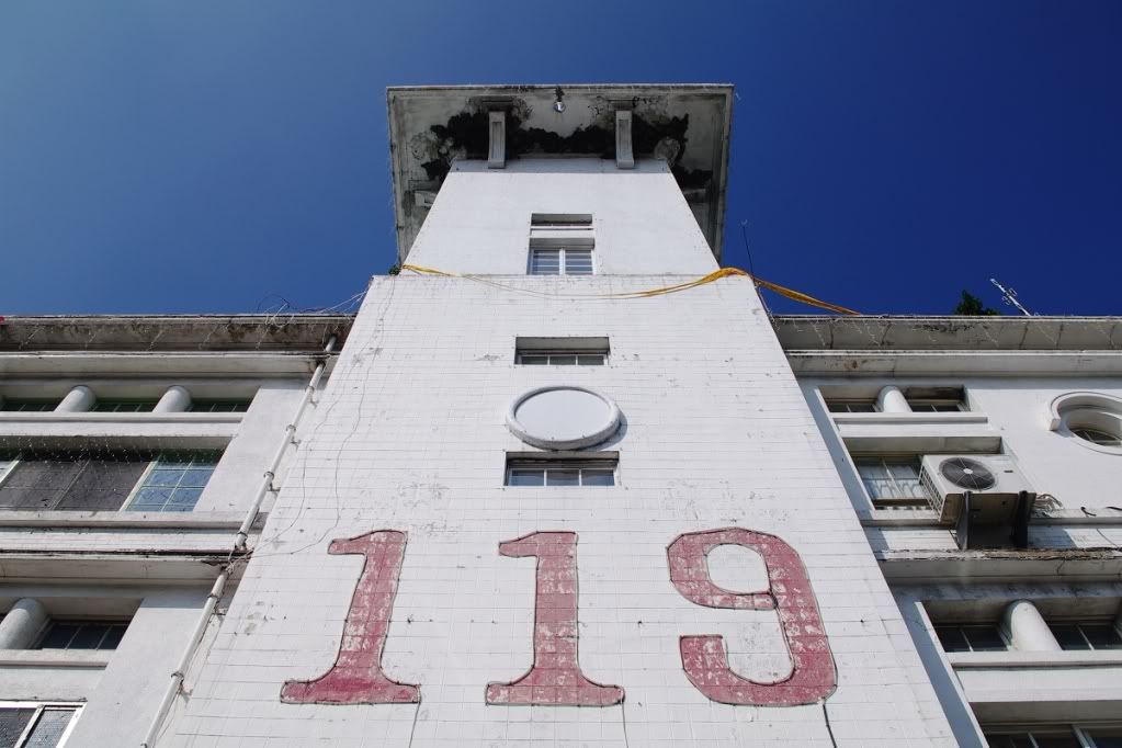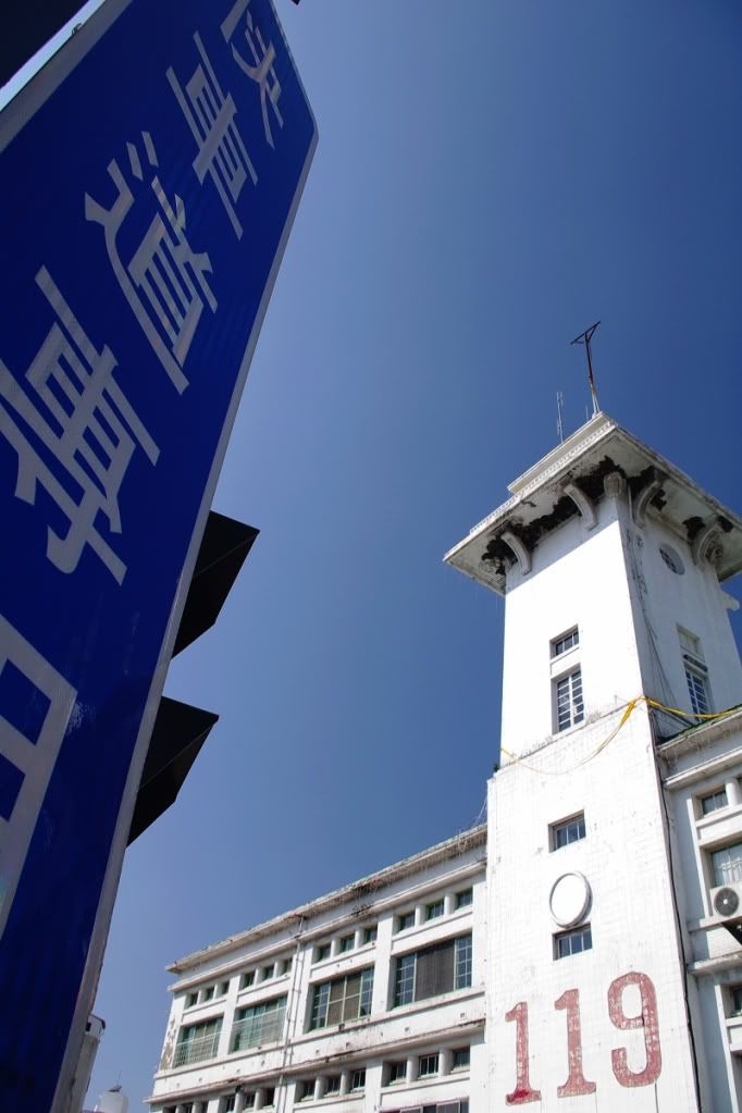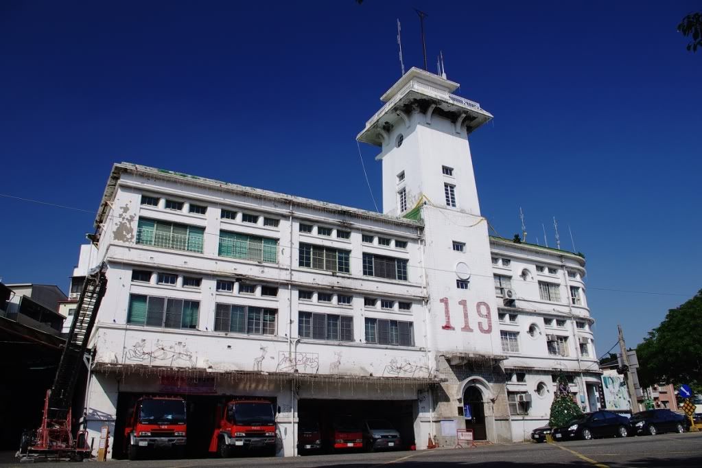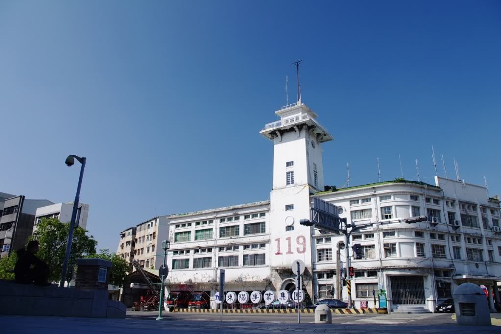 轉動鏡片,加深效果,藍至發黑的天空包圍了消防局,