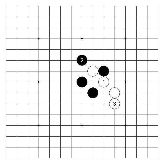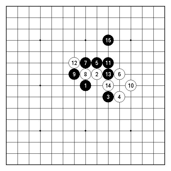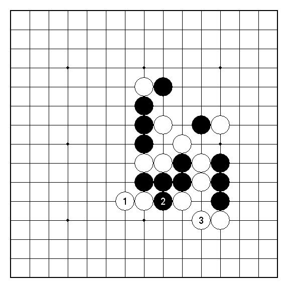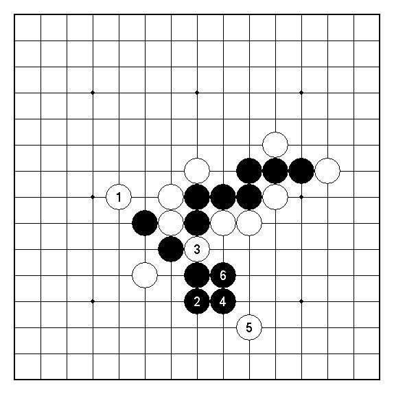 圖5︰圖2白3的另一變化。此局面白棋仍是明顯不行。