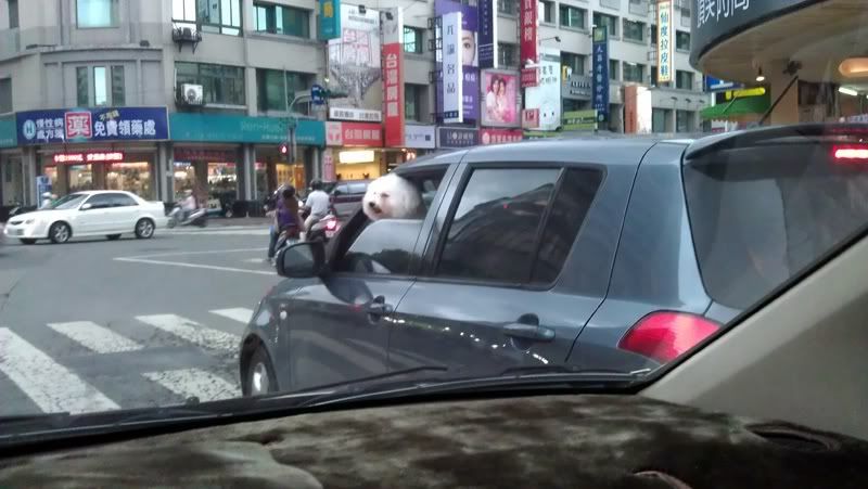 停紅燈時稍微往前半個車身,剛好都是 看到女駕駛把狗放在身上,不要命 ![]() |