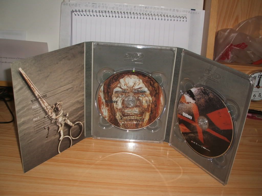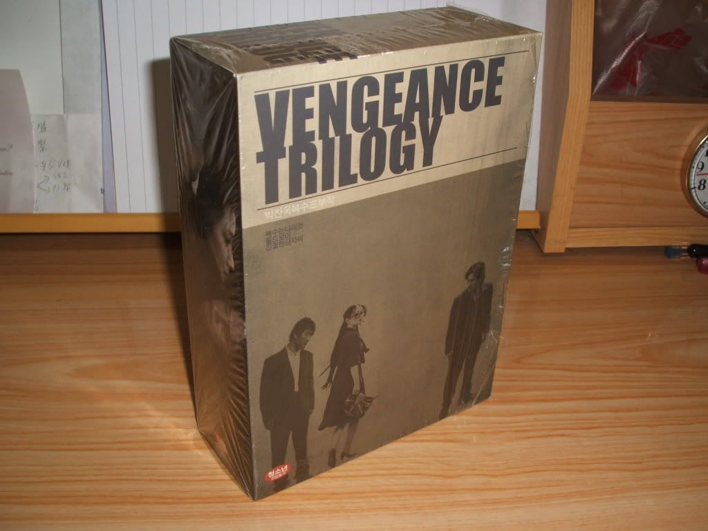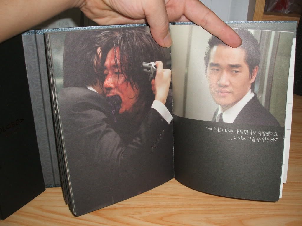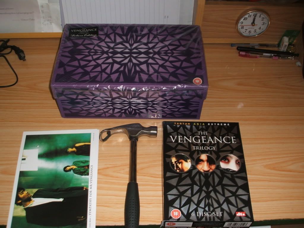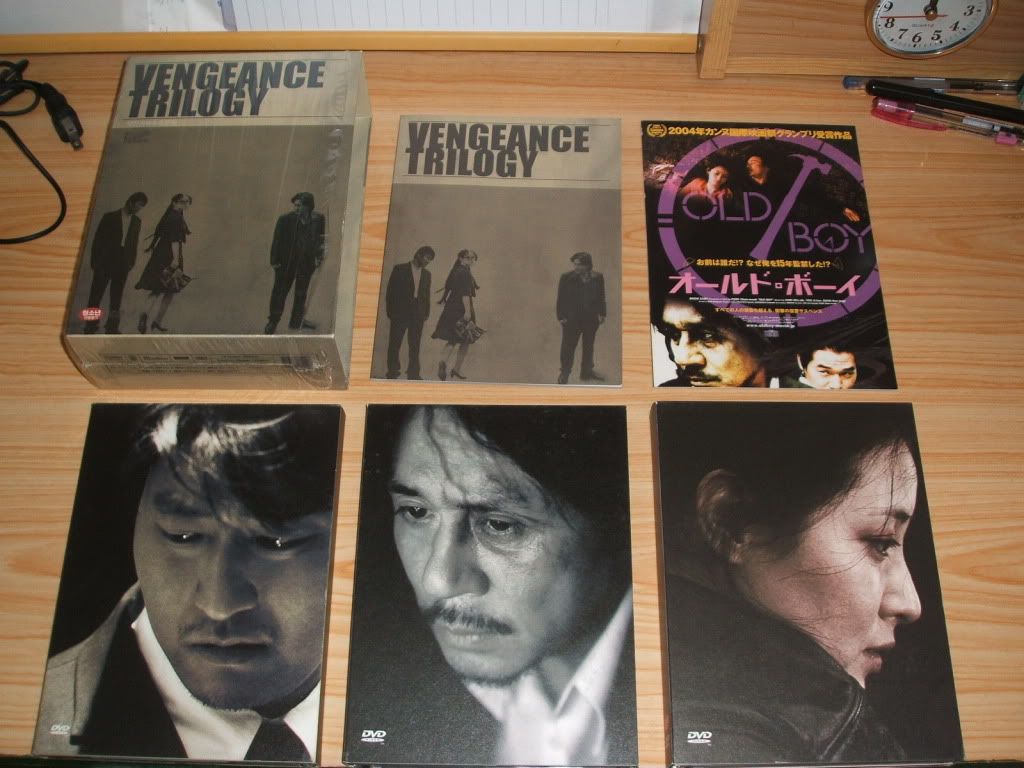 ![]() ![]() 韓國發行的復仇三部曲七碟套裝。 ![]() 全彩書冊。 ![]() 三部電影的明信片。 ![]() 復仇雙碟展開圖。 ![]() 原罪犯雙碟展開圖。 ![]() 死亡選擇三碟展開圖。 ![]() 合照。 ![]() 英國發行的復仇三部曲六碟紫盒限量版。 ![]() 打開盒子會先看到拔牙槌子。 ![]() 拔牙槌子獨照。 ![]() DVD碟片外裝。 ![]() 合照。 |
