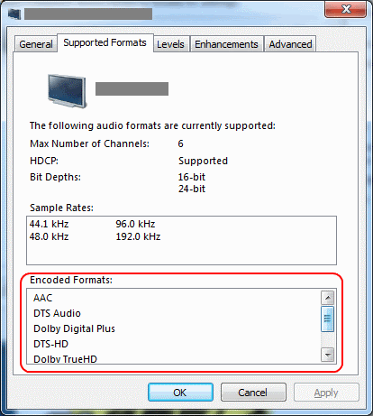 目前我在Bit Stream 藍光音效時出了問題 也就是在播放軟體(PowerDVD 11白金, Totalmedia Theatre 5)上設定輸出DTS-HD Master時...到擴大機後卻只有DTS 輸出Dolby True-HD 也只有Dolby Digital D 我儘力爬文後發現...似乎是顯示卡的音效驅動有問題 我死灌活灌新的驅動程式都沒辦法輸出 顯示卡是微星的Radeon 6850 Cyclone .. 要如何確認HDMI音效是否可以輸出DTS-HD等音效格式呢 OS 是Vista Service Pack2 擴大機是Yamaha RX V465... 應該都沒問題才對呀..... |