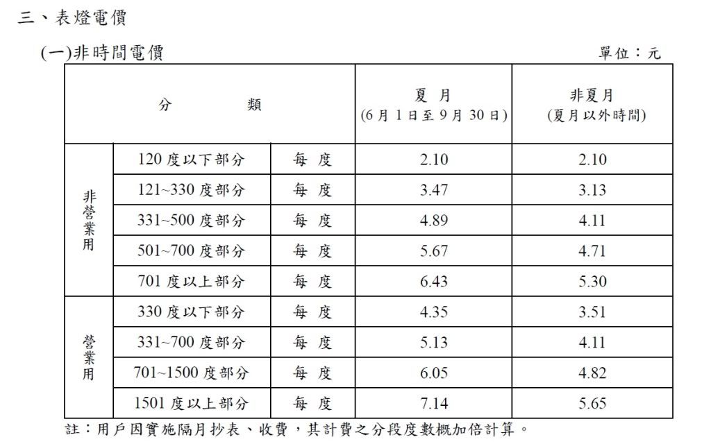 [電] 新電價計算公告