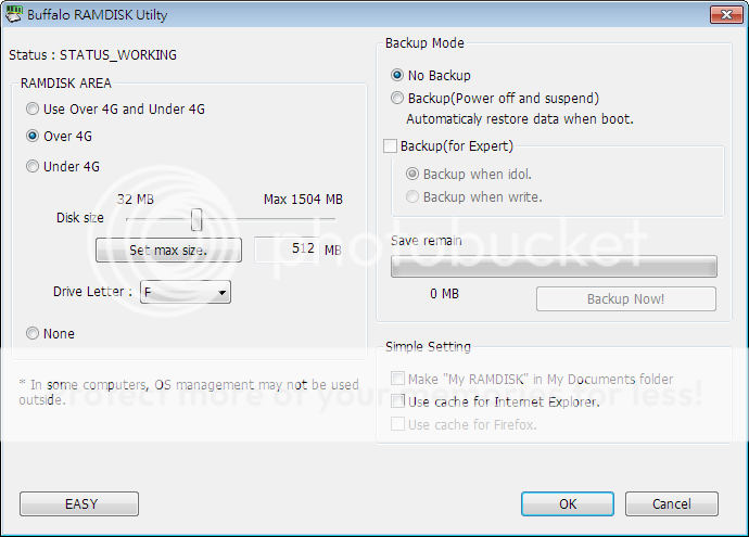 謝謝大大的回應 剛剛踹過打開 save/load disk image,結果竟然搞掛 RAMDisk,得改掉系統TMP設定路徑才能再進去改設定, 我覺得可能是免費版的跟GM965 chipset配4.5GB RAM不合 ![]() |