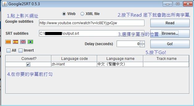 抓字幕是用Google2SRT (需要安裝JAVA1.5 以上版本) Google2SRT解壓後執行run.bat ![]() 抓下來的srt字幕跟影片放一起取同檔名就可以了 此文章於 2012-05-31 12:13 PM 被 GFF_315 編輯. |