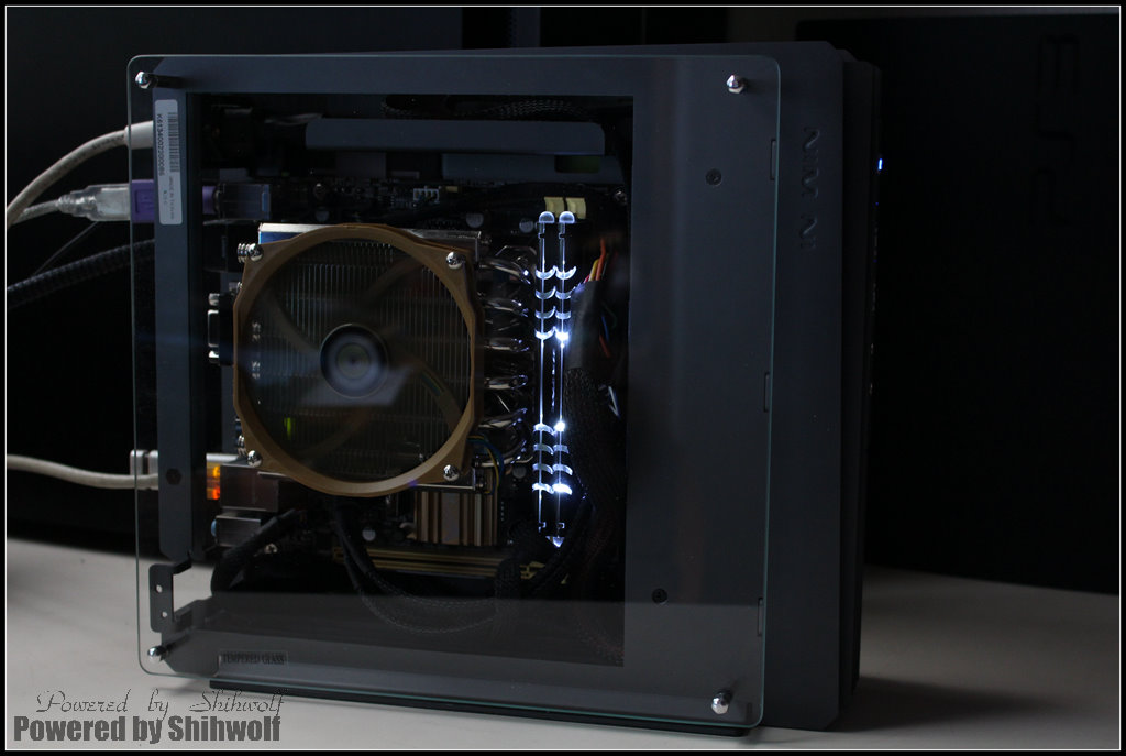 隨著6月初的Computex而解禁的Haswell平台. 讓很多玩家開始組裝新電腦. 鐘愛於ITX主機版的我, 看了一下賣價, 覺得價位便宜就直接拿來開箱了. ![]() ASUS H87I-PLUS 彩盒正面照. ![]() 入門級的版子, 主打5X Protection. 數位電源控制, 保護電路FUSE, 防靜電ESD Guards, 使用5K固態電容, 不鏽鋼Back I/O ![]() 隨著新平台而改變包裝風格, 使用黑金雙色給大家新的視覺感受. ![]() 直接來看內容物吧, 使用者手冊, driver, I/O擋版, SATA排線. ![]() 這次主要輸出介面為HDMI, DVI, D-sub. 並同時配置USB 3.0 & 2.0 各4 Port. 值得一提的是, 即便是最入門的主機版也擁有不割手設計的I/O擋版了! ![]() 來看主機版本體照片吧. 黑色底金黃色Slot 搭配, 是這次全系列的新風格. ![]() ITX 尺寸為17 x 17 cm. 轉個角度一樣好看. ![]() 主機版背面特寫. ![]() CPU 使用Socket 1150, 採用3向供電. ![]() DRAM 依舊使用DDR3. 而chipset直接提供6 Port SATA3. 可以發現這些SATA Port並未擠在一起. 主要是考量到使用者安裝的方便性. ![]() 即便是最入門的主機版, 也採用Digi+數位供電. 而這張主版上提供了2個 4Pin Fan Power. ![]() 在I/O Port後端的FUSE. 請自行觀賞. ![]() ![]() 提供前置USB 3.0 & 2.0 各一組(2 Port)接頭. 前置Audio接頭. ![]() 5K 即5000小時規格, 固態電容. ![]() 把手邊的AXP-100和Avexir Core裝上. ![]() 因為CPU Socket位置設計的好, 所以可以安裝AXP-100. 如果是他牌ITX設計. 則會因為CPU Socket離PCI-E太近而導致干涉. ![]() 怎麼分辨會不會干涉PCI-E? 最主要的就看chipset位置. 如果chipset位置放在主版另一側. 就會導致干涉! ![]() 賞圖. ![]() 上機, 是觀賞用的in win機殼. ![]() 換角度賞圖. ![]() ![]() 上機安裝Windows. 看那閃閃發亮的RAM. 就是爽阿. ![]() 最後再來一張關燈特寫. 實在是美極了. ![]() -- 因為是H Series chipset. 沒什麼好測效能的. 所以這次就是純粹組裝分享. 價格是目前買到最便宜的ITX主機版. 所以才會說是Haswell的門票. 有興趣的朋友歡迎參考. By shihwolf
