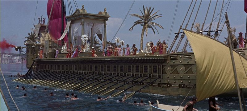 ![]() Cleopatra不僅終結了埃及王朝,也差點終結了二十世紀福斯。 套句本片花絮所說的,幕後的故事比幕前精彩許多,埃及艷后的拍攝故事可說是充滿了各式各樣災難和緋聞。 ![]() 平心而論,埃及艷后雖然面臨了這麼嚴重的拍攝困難,但仍然交出了一部稱得上好看的電影。接手拍攝的第二任導演約瑟夫•裡歐•曼凱維奇(Joseph Leo Mankiewicz)在一邊全面親自改寫劇本的狀況下,還要一邊統籌並執行拍攝的工作,常常是白天拍片、晚上趕工寫第二天要用的劇本,在連續高強度的工作和驚人拍攝時程壓力下,依然拍出了有著驚人壯觀且流暢的電影。 ![]() 特別是在那個不知何謂電腦特效的時代,舉目所見的一切大場面都是一點一滴用人力打造出來的。在義大利拍攝外景時,還曾因為造景工程過於浩大,以至於當地的泥水工人不敷所需,必須到各地招募更多的工匠。更甚者,造景工程消耗了大量的建築材料,一時間還讓當地面臨了建築材料短缺的窘況。 ![]() ![]() 其中最令人印象深刻的就是船。片中真實打造了各式所需的船隻,例如:Cleopatra從埃及前往羅馬所乘坐的船艦,該船的造價達27萬美金,可搭載演員在海上真實航行,不過肯定不是用槳划的。 ![]() ![]() 片中的戰爭場面規模也是相當浩大驚人,像是開場的凱撒成功討伐龐培的戰場狀況(這幕是後來補拍的),或是安東尼與屋大維的海戰場面,或是阿基拉斯圍攻身處埃及亞歷山卓城內的凱撒。 ![]() ![]() ![]() ![]() ![]() ![]() ![]() 不過,這些都還比不上Cleopatra進入羅馬城這幕壯觀。看著Cleopatra坐在與拱門齊高的人面獅身像上,由上百名奴隸拉著穿越拱門,進入羅馬城,身著金色尊貴服飾,由八名大漢扛著王座走下台階,將Cleopatra那自命不凡的奢華氣質表現得淋漓盡致。 [youtube]4-dspv6LJHM[/youtube] ![]() ![]() 劇本雖然是邊拍邊寫的,但仍然寫的有聲有色,相當不簡單。但其中比較令人意外的是男女情愛的對白寫得相當現代感,拿掉了古羅馬的時代佈景和角色穿著的話,端看Cleopatra和凱撒或Cleopatra和安東尼的對話和互動,實在就跟現代愛情片沒有太多差別。 ![]() 由伊莉莎白泰勒飾演的Cleopatra是相當出色的表演,將Cleopatra的智慧、迷人和俏皮演出的恰如其分,雖然本人因拍攝此片時鬧出了不少風波,還趁機賺進了七百萬美金的片酬,但對照起她在片中的演出和吃到的苦頭,以及與死神擦肩而過的經歷,其實這七百萬勉強算是拿得合理。 ![]() Cleopatra雖是一名頗富智慧的女王,但其實她的智慧只是善於舞弄宮廷權術,對於國際政治,與大國打交道的經驗明顯不足,特別是在屋大維掌權之後,兩相對照之下,Cleopatra的作為就顯得相當孩子氣。可是偏偏屋大維才是一臉看起來孩子氣的人。 ![]() 這一幕也是非常地好玩,一點都沒有史詩電影的嚴肅感,反而充滿了愛情小品電影的趣味。 ![]() 說到屋大維,飾演屋大維的Roddy McDowall,在凱撒時期,他飾演的屋大維就像一個是安靜的年輕人一樣,除了覺得他看起來很憂鬱之外,一點也看不出他有著獨一無二的雄心壯志。甚至在後三巨頭時代,他在與安東尼交手時,也仍未見明顯的不同,還是一副病弱書生的感覺,與安東尼那可以馳騁沙場的百戰將軍形象相去甚遠。 ![]() 但是當安東尼去到了埃及之後,Roddy McDowall飾演的屋大維一下子活躍了起來,那個出色的演出簡直是嘆為觀止,屋大維每一次的說話和動作都充滿了魅力,特別是他展現超齡的智慧與謀略,還有驚人的演說天賦。他在與元老院的政治鬥爭上完全超越了前任獨裁者凱撒的能力。若說凱撒是以德高望重的形象與為羅馬在外征戰的功勞博取了元老院的信賴與尊敬的話,那麼屋大維完全是依賴個人魅力和智慧徹底征服了元老院,不僅操弄了羅馬人民的意志,也操弄了元老院的意志,一切的發展都如他所預料般地往他所計劃的方向而去。 ![]() 而只會打仗的安東尼和一旦在屋大維面前就顯得微不足道的Cleopatra的智慧,完全不是擁有強大的羅馬軍團和超人智謀的屋大維的對手。 ![]() 飾演凱撒的Rex Harrison展現出一個年過半百的百戰將軍的穩重和智慧,本片的前半首先可以看到凱撒那了不起的智慧和帶兵領軍的能力,不僅征討了政敵龐培,更以有力且富智慧的方式解決了埃及統治者之爭的問題。其中更有著名的勝利信函:「VENI VIDI VICI」(我來,我見,我征服)。 ![]() 但這時的凱撒也暴露出了他的問題。首先,他年事已高。其次,他有癲癇痼疾。再三,此時他膝下無子。因此,當他自32歲那年看到了亞歷山大塑像,感嘆到亞歷山大在32歲時就已征服了已知世界並殞落,而自己至此卻仍無所作為。汲汲營營努力至52歲時,卻仍然感到難以追上亞歷山大時,就給了Cleopatra機會。 ![]() 年僅21歲的Cleopatra以亞歷山大的夢想、為凱撒生下兒子、掌握了凱撒有癲癇痼疾的秘密,成功攏絡了凱撒成為政治夥伴,企圖藉由把凱薩推向羅馬最高、且唯一的執政來換取埃及的獨立盟友地位。 ![]() 被Cleopatra的亞歷山大迷夢昏頭的凱撒,在政治準備尚未充分之時,就企圖登基稱帝,但換來的就是在元老院內遭到眾人暗殺。這幕暗殺戲本來以為會用莎士比亞的劇作版本,在執政官的座位上遭到圍攻,把布魯圖斯那一幕演出來,可惜並沒有。 ![]() 相對於凱撒這個偉人因為最後因昏頭而行事過急遭到失敗來看,安東尼的格局完全比不上。飾演安東尼的Richard Burton在本片拍攝中和伊莉莎白泰勒傳出了許多緋聞,可偏偏當時兩人都有