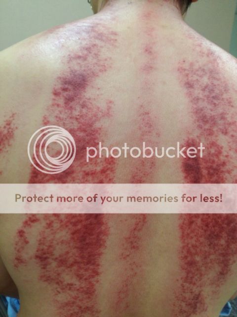 我看到照片時也嚇一跳 2.有些腦袋裝水泥、豆腐的西醫認為刮痧是用破壞皮膚的方式,把皮膚弄出血才會這樣 引用:
