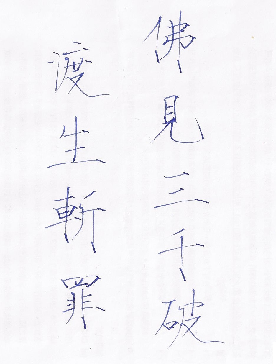 紅字這一段只是把經文的大意講的很通俗 取自金剛經的經文 若以色見我 以音聲求我 是人行邪道 不能見如來 無我相、無人相、無眾生相、無壽者相。是故須菩提!菩薩應離一切相,發阿耨多羅三藐三菩提心,不應住色生心,不應住聲香味觸法生心,應生無所住心。若心有住,即為非住。 離一切諸相,即名諸佛 |