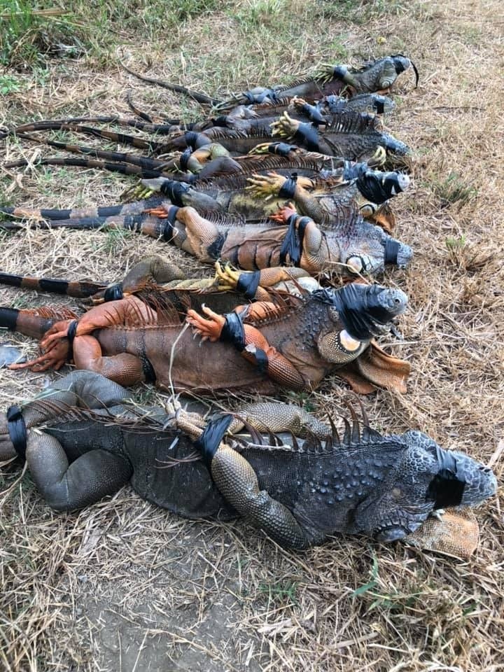 悚!網售綠鬣蜥 成排反綁如槍斃戰犯