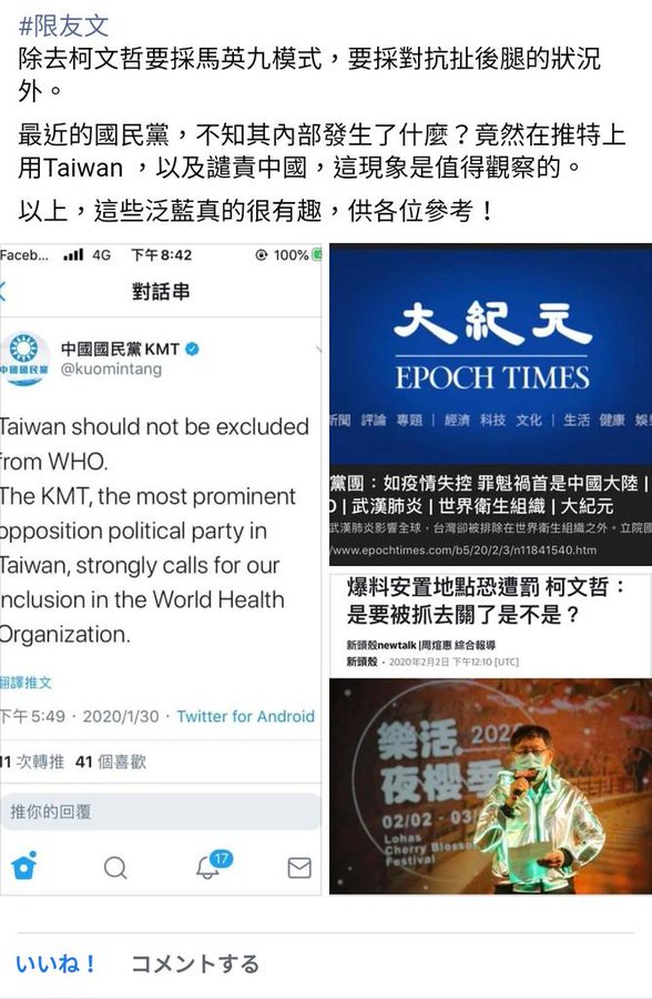 親共反共, 各有支持者, 都可以說的很好聽, 媒體(包括網軍)宣傳帶輿論風向, 才是重點, 以前媒體是國民黨壟斷媒體, 民進黨吃盡苦頭, 現在反轉, 民進黨掌握媒體, 易宣傳易當選, 進貢的多 反觀國民黨, 以為黨產賣掉就歸零, 其實要充公, 品牌被打成負面, 沒實力就沒錢, 又沒黨產, 打不過民進黨 此文章於 2020-02-05 01:26 AM 被 abcpanadol 編輯. |