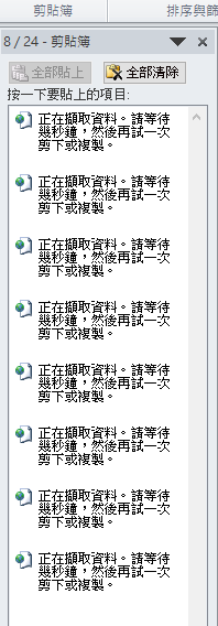 為什麼Office的剪貼簿會出現"正在擷取資料。請等待幾秒鐘,然後再試一次剪下或複製。"?