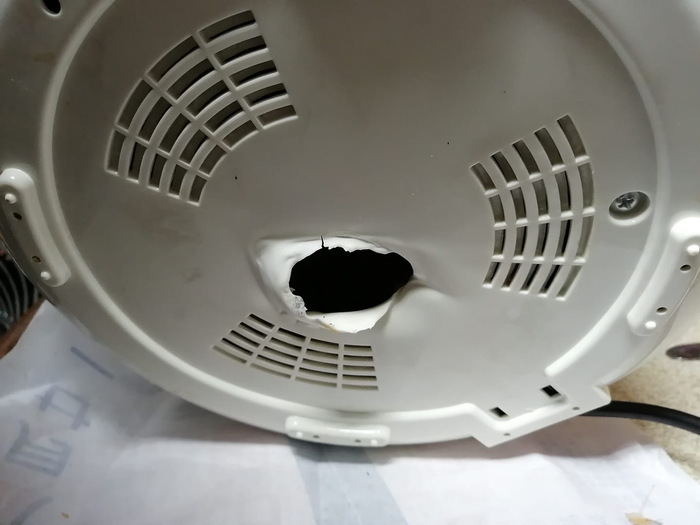 發現 電鍋 下方的屁股 破了一個洞 ?(看起來是高溫融出來的???)
