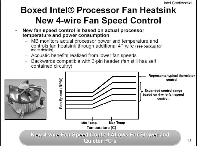 SOCKET T的接腳是蠻脆落的,盡可能不要去觸碰到.否則有可能造成接觸不良,重則的話會造成接腳彎掉. 安裝散熱裝置時的樣子,平的那一面朝向散熱裝置,並往下按下,既可安裝完成. 取出時,用一字起子,往左90度,並往上提起.就可以把散熱裝置拿起了. 目前原廠的散熱裝置,風扇是四個接腳的.可讓控制的轉速變化更多種. 這是以前的3PIN原廠散熱裝置的溫度變化. 這是目前4PIN原廠散熱裝置的溫度變化(下面四條都是)