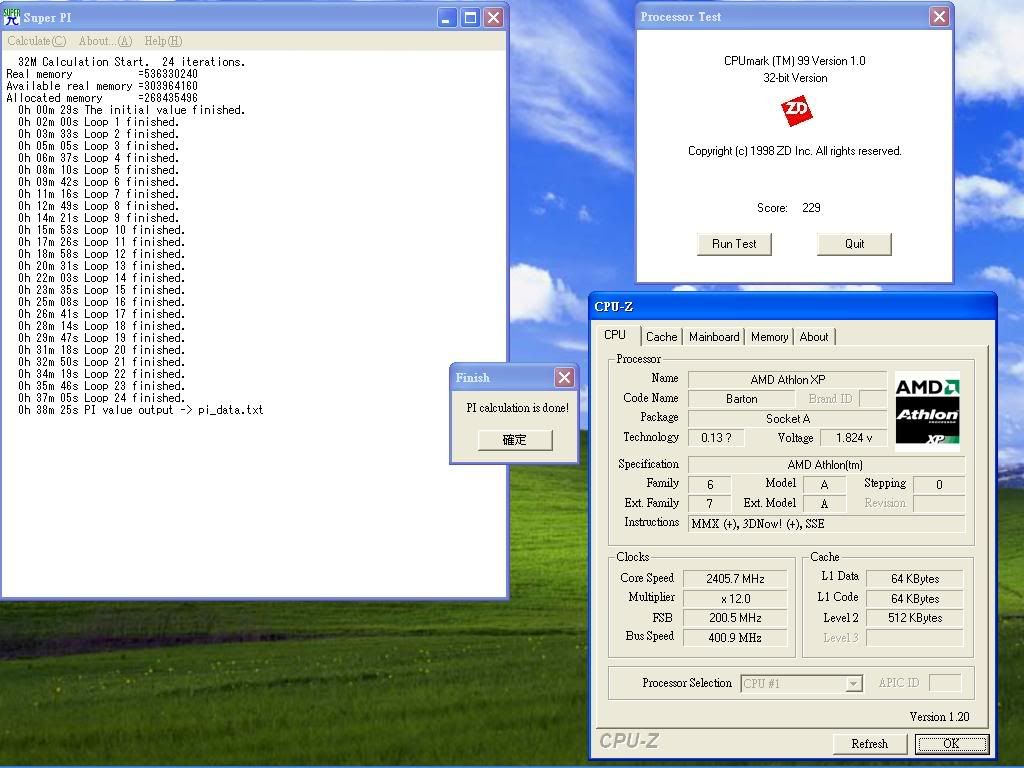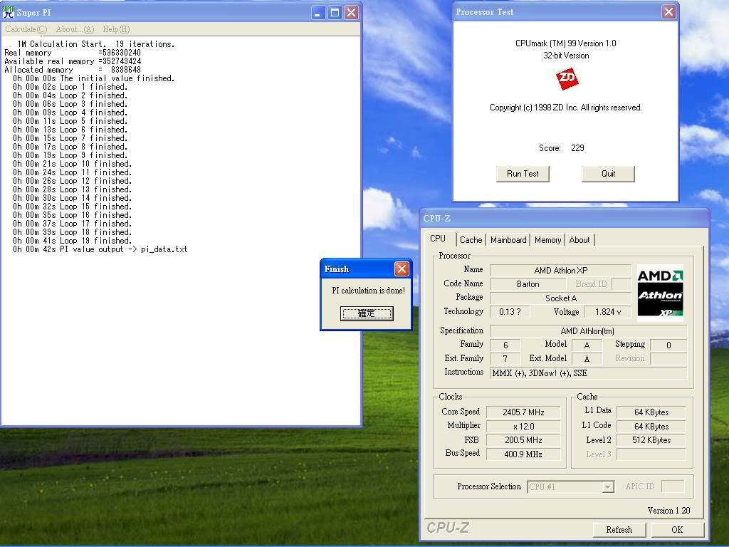 主機就好像在閒置狀態 所以一起出清吧 不囉唆直接看圖 220*11=24XX.....CPU主機板皆可上220以上外頻 無奈手邊的記憶體不好要除頻所以不測 ![]() 200*12=2400 S_PI 1M=42秒 ![]() 200*12=2400 S_PI 過32M 中間有跳幾次螢幕保護程式 ![]() 主機板8RDA3I VER3.X版吧 盒裝齊全 使用未滿一年 配件幾乎都沒拆 一樣可上220外頻 北橋可加壓 電容為全日系 電源區為SANYO 無危險電容 CPU是XP-2000改的 但是依上面測試 上真實時脈2400MHZ沒有問題 DIE無損 顏色均勻 與其碰運氣去買一顆很有可能是REMARK的CPU(拍賣上面太多拉...) 到不如買一顆便宜又實在的CPU 以上電壓皆為1.8X 電壓可能可以再低 時脈可能再高 但沒時間測試 再試明天就要遲到了 以上賣4000 意者請來信[email protected] (PM要爆了) 台北縣市面交為主 外縣市可宅配 但須先匯款 可開放拍賣下標 若有數人同時詢問 以價高者得 若有爭議 或沒人要 就丟拍賣了 此文章於 2004-12-09 01:27 AM 被 wycjy 編輯. |