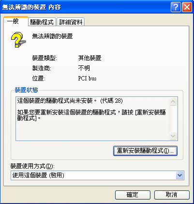 3:改安裝最新的71.81版driver,抖動消失,能跑3Dmark/Aquamark3,而且無法辨識的裝置竟然也解決了