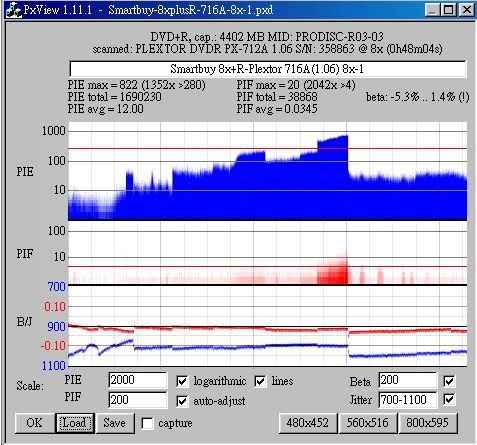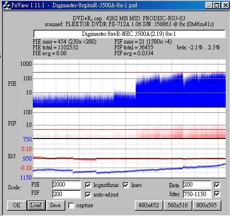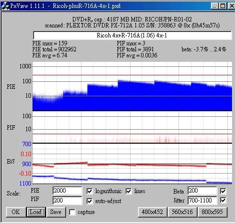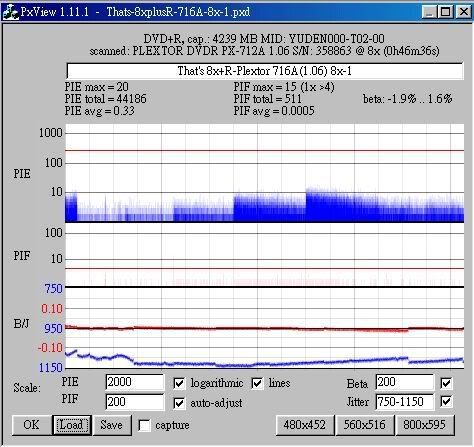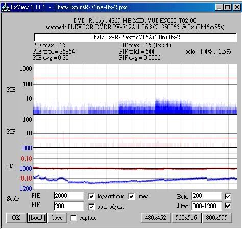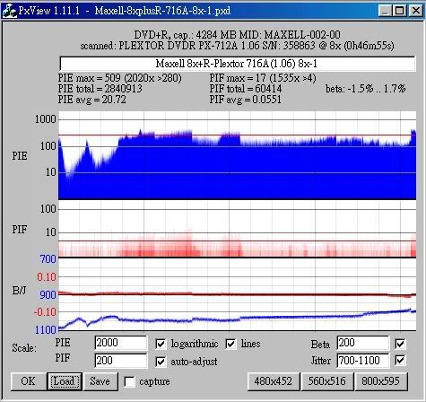 Maxell 8x +R(MIJ)用716A(1.06) 8x燒,測出來很糟: ![]() ![]() That's 8x +R(MIJ) 716A(1.06) 8x,測出來很好... ![]() ![]() 啊! 好像離題了...