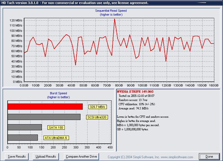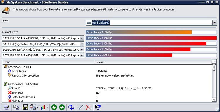 補二張 Seagate 7200.9 80G x2 raid 0 的測試: HD Tach 3.01 ![]() Sisoftware sandra Pro 2005.10.10.69 ![]() 效能沒話說…